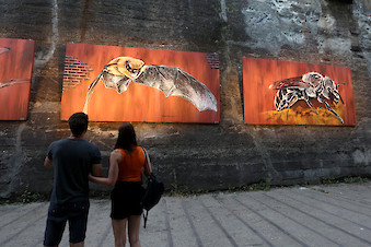 Der Graffiti-Künstler Marten Dalimot sprühte vier artengeschützte Tiere aus dem Park auf Platten und hing diese als Bilder an die Wand einer Bunkertasche, in der zuweilen leibhaftige Kreuzkröten anzutreffen sind.