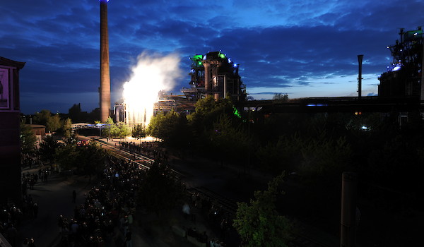 Neben Installationen, Live-Musik und Tanz-Performances gehört das 10-minütige musikalische Höhenfeuerwerk vor illuminierter Hochofenkulisse um 23:15 Uhr zu den Highlights des Abends. Der beste Ort das Feuerwerk zu sehen und zu hören, ist der Platz vor der Kraftzentrale im Landschaftspark.